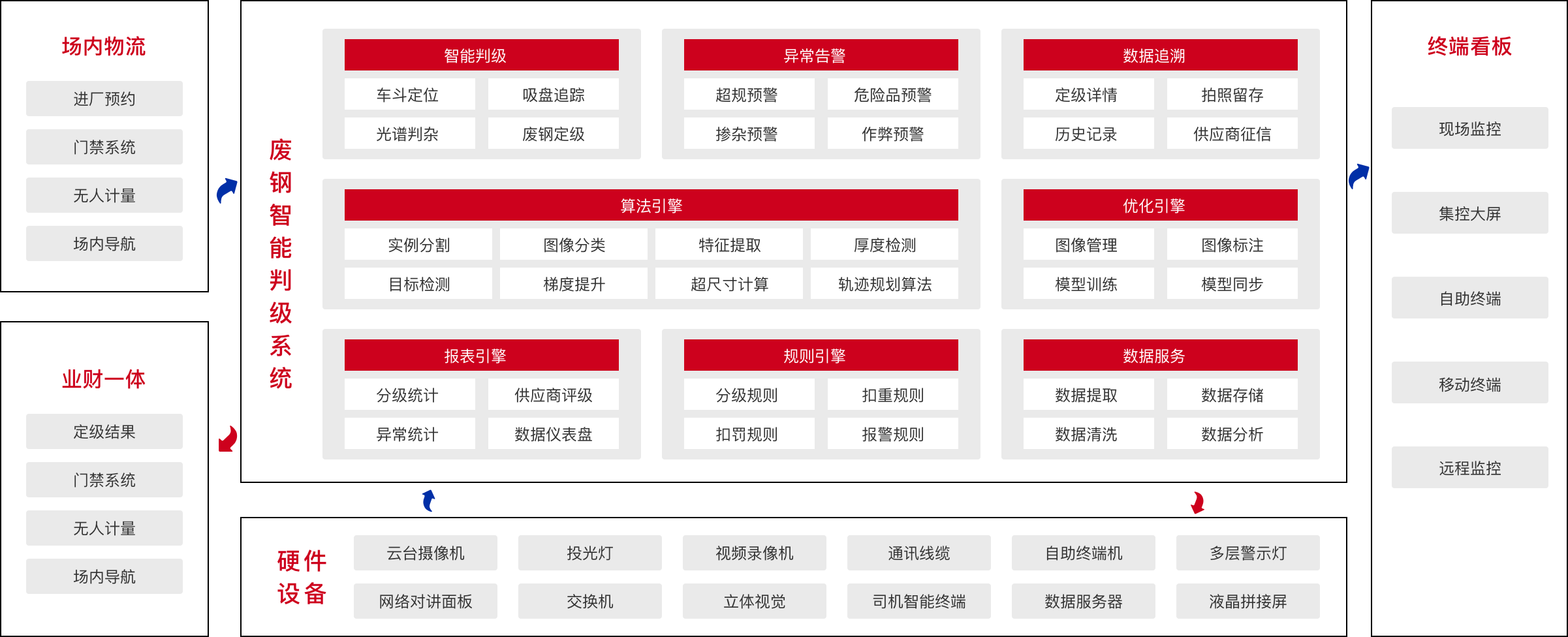 废钢智能识别系统软硬技术结合的智能产品。实现废钢自动判级、扣重、扣杂、结算。