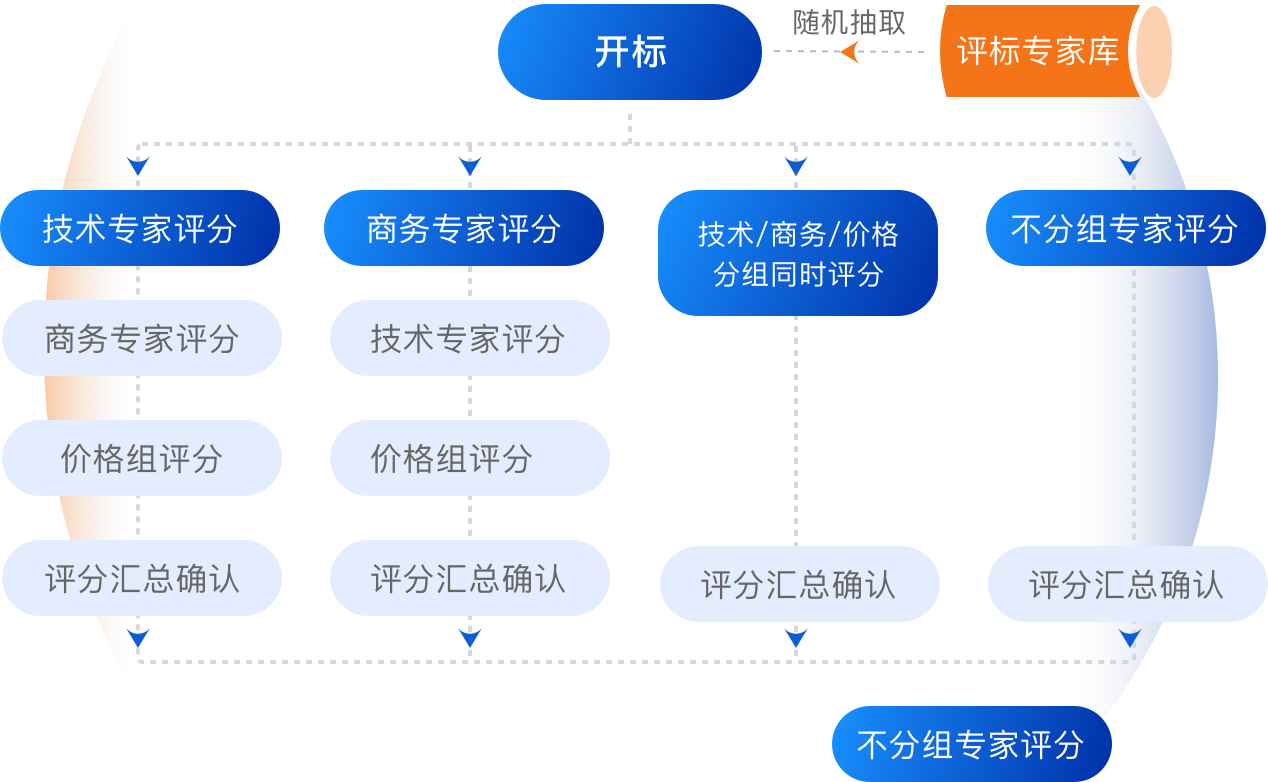 专家库分组分类,技术商务规则区分、评分汇总,评审辅助、报告确认