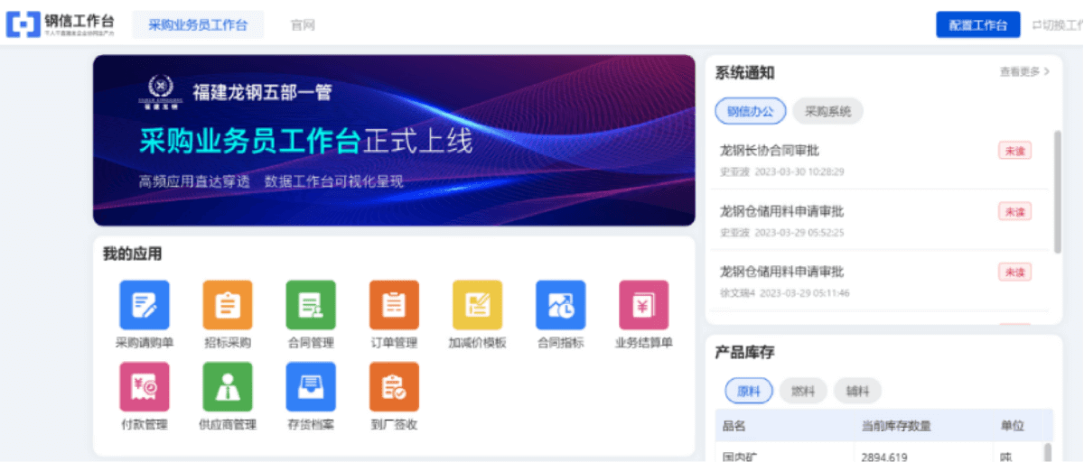 钢信工作台同时支持嵌入网页,轻巧实现企业原有门户与钢信工作台的快速集成;钢信工作台在工业互联网平合五层架构的作用,是以钢信工作台为统一入口,实现用户统一沟通,应用统一接入,消息统一触达,协作内外统一,一体化办公目标